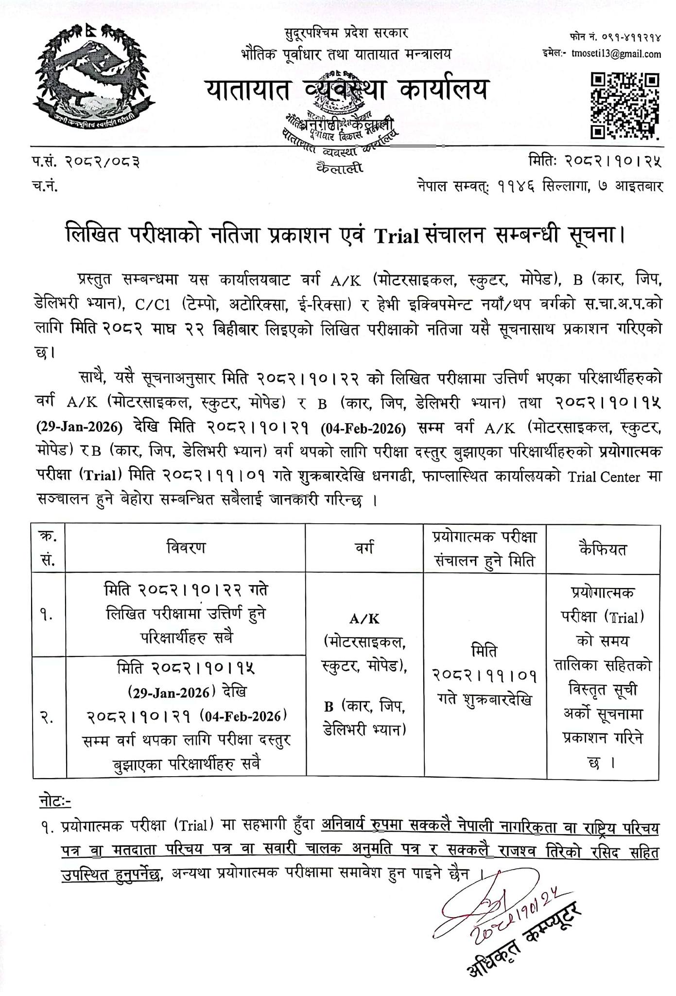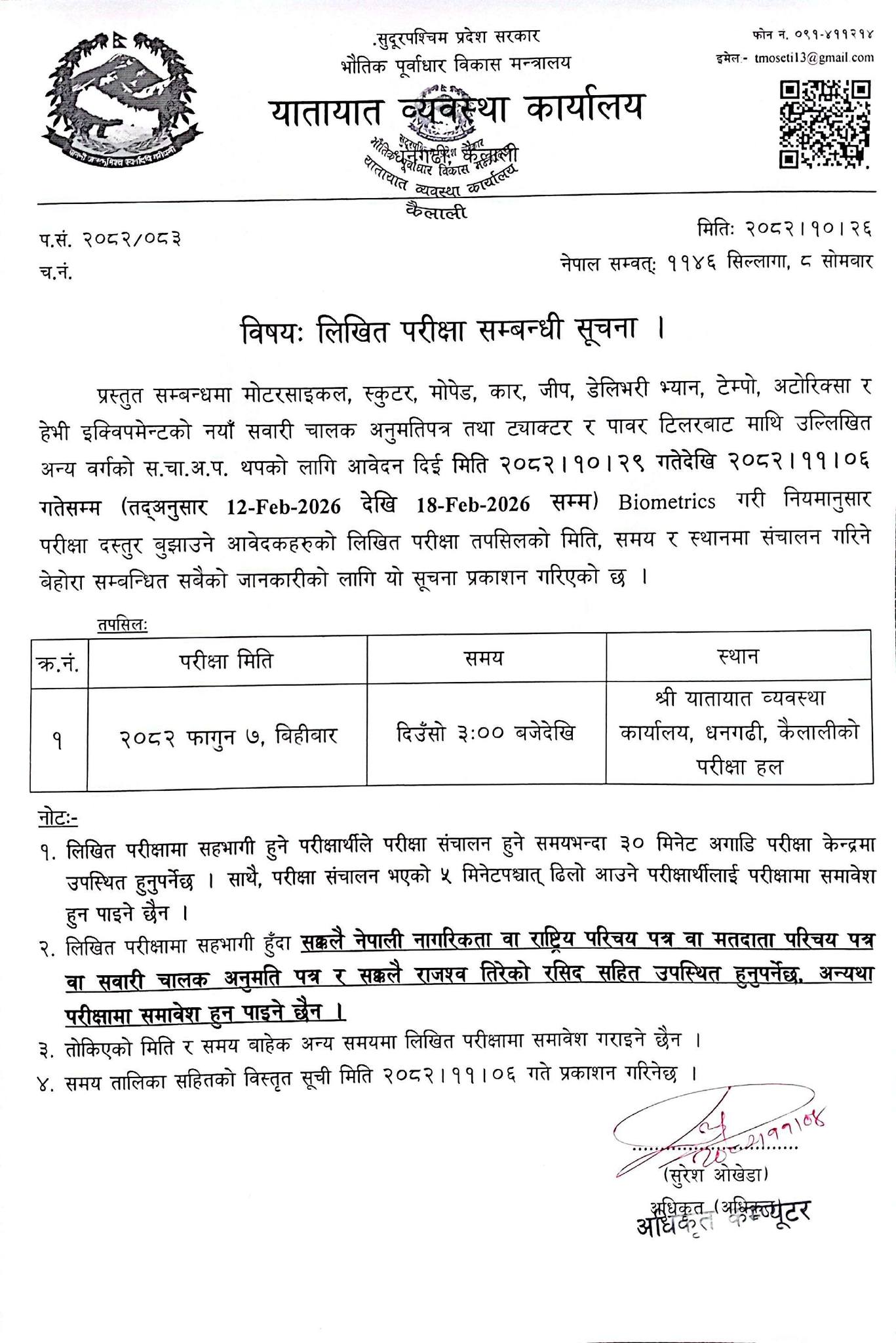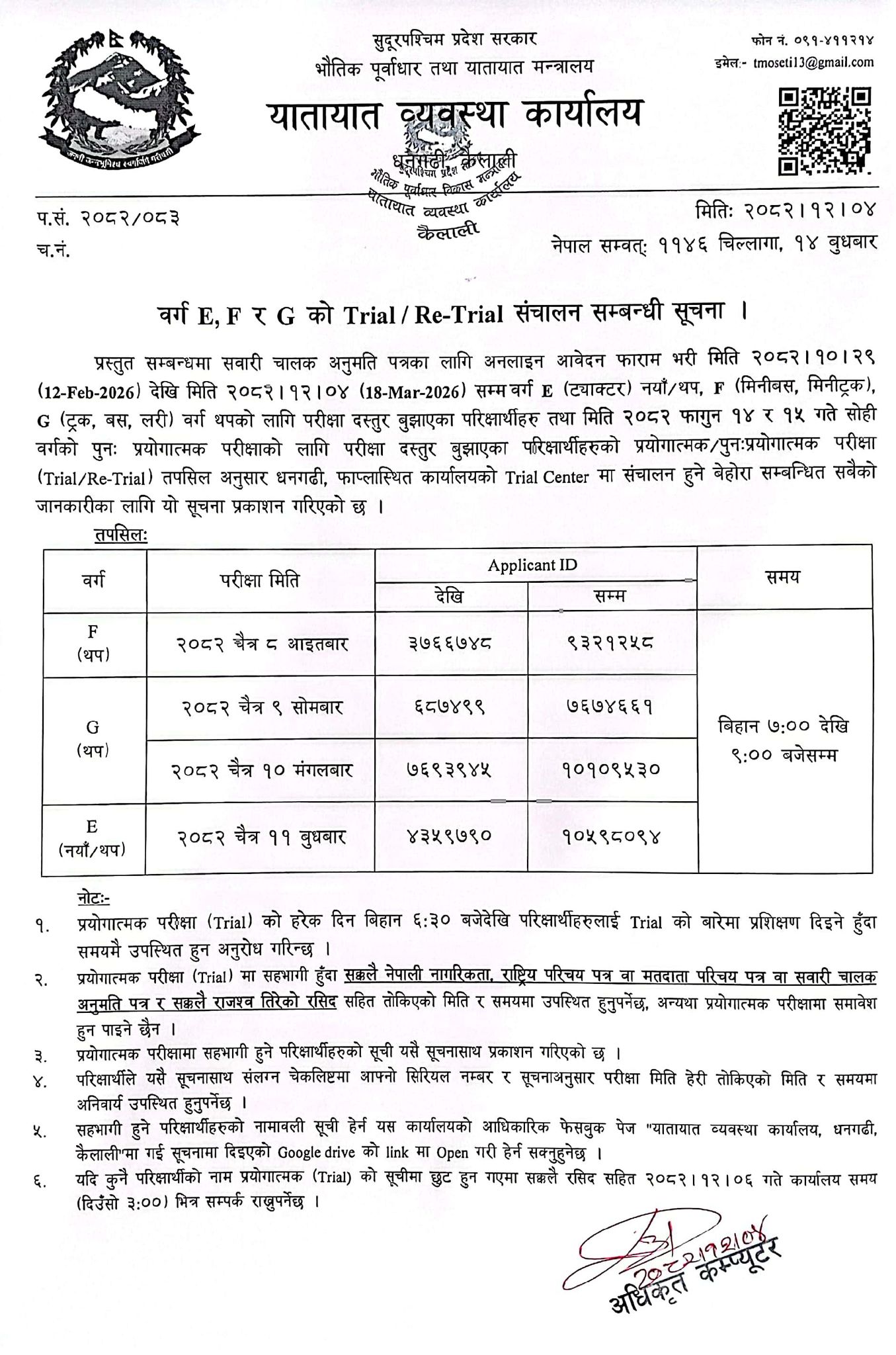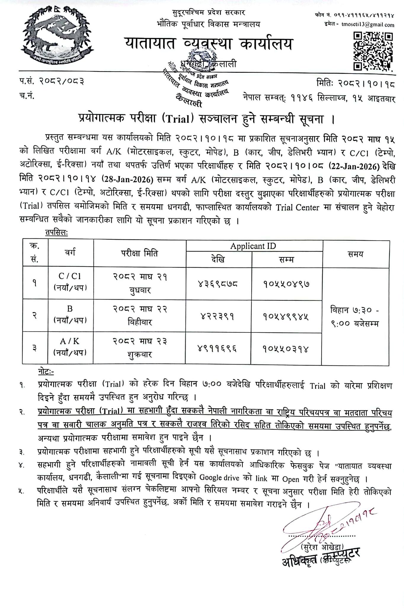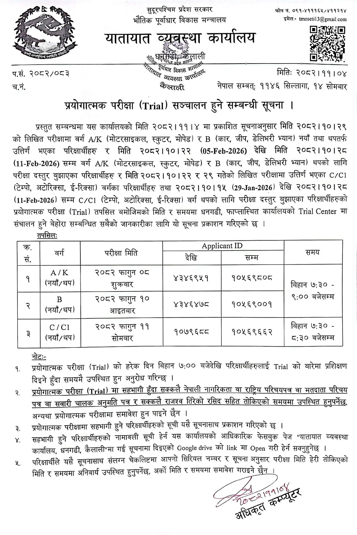 >> प्रयोगात्मक परिक्षा संचालन हुने सम्बन्धी सूचना।