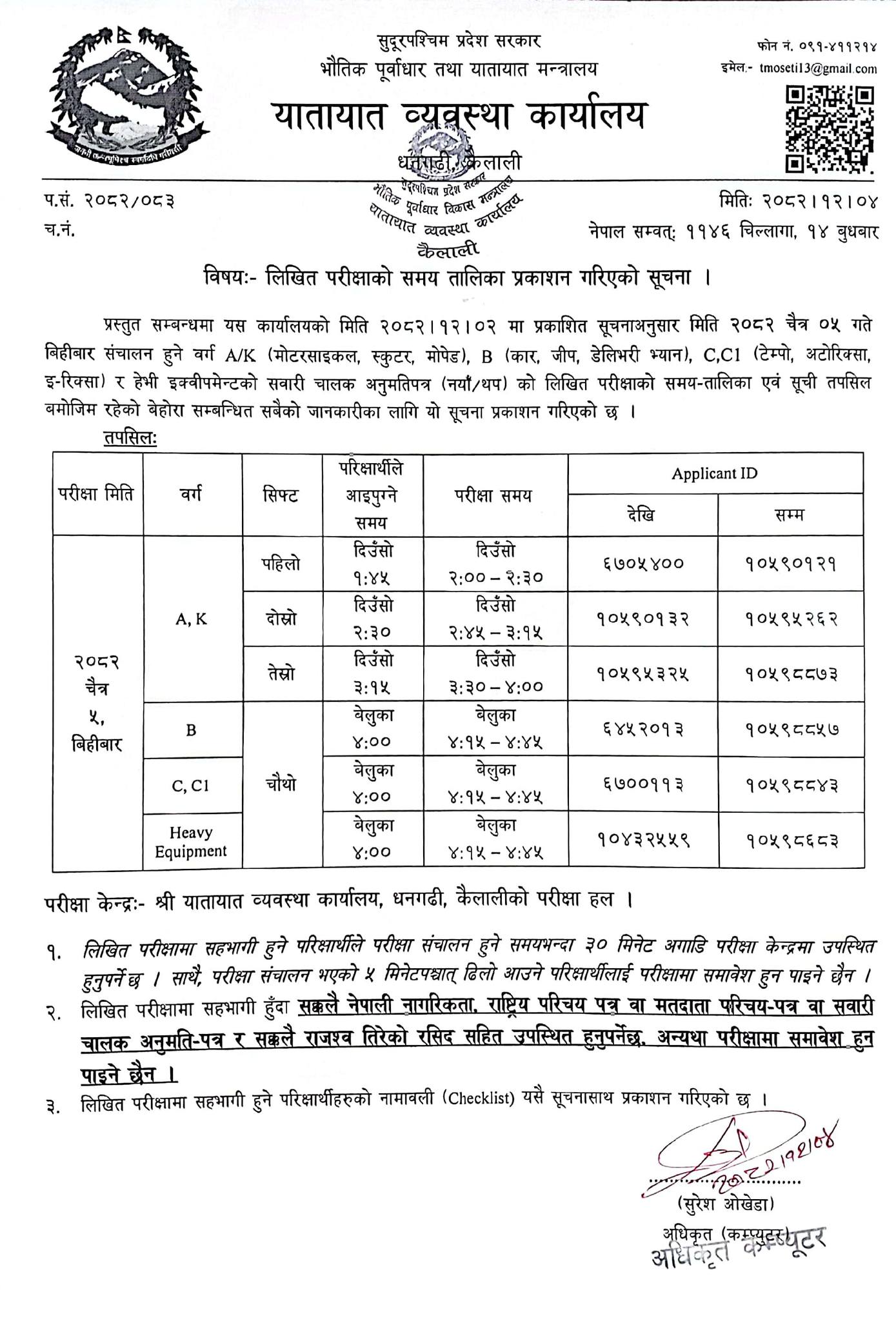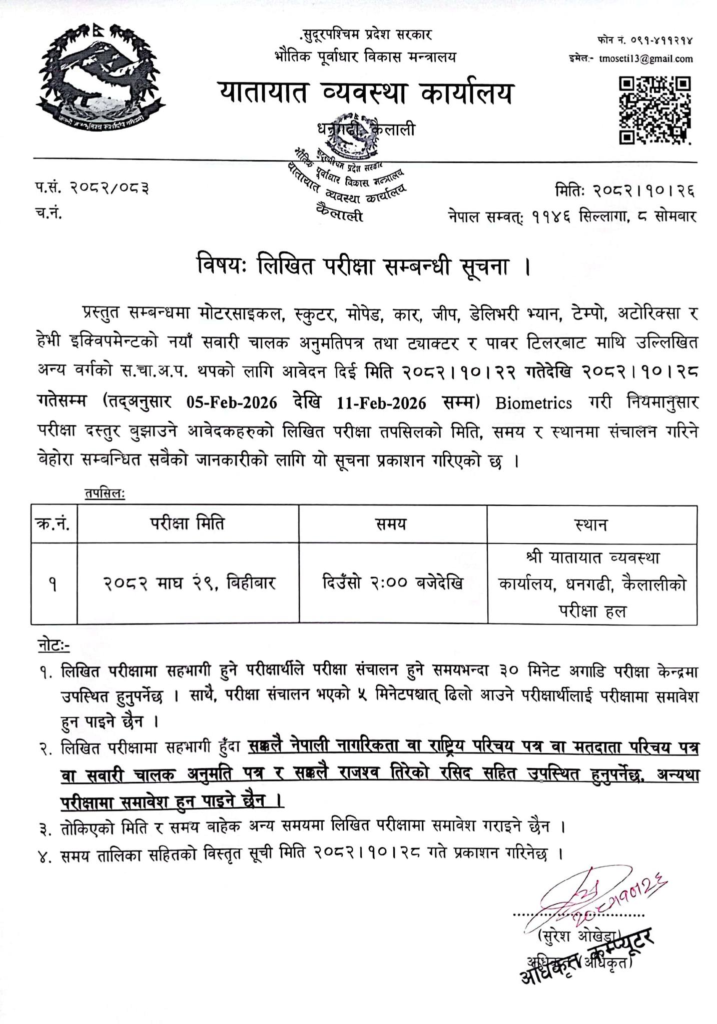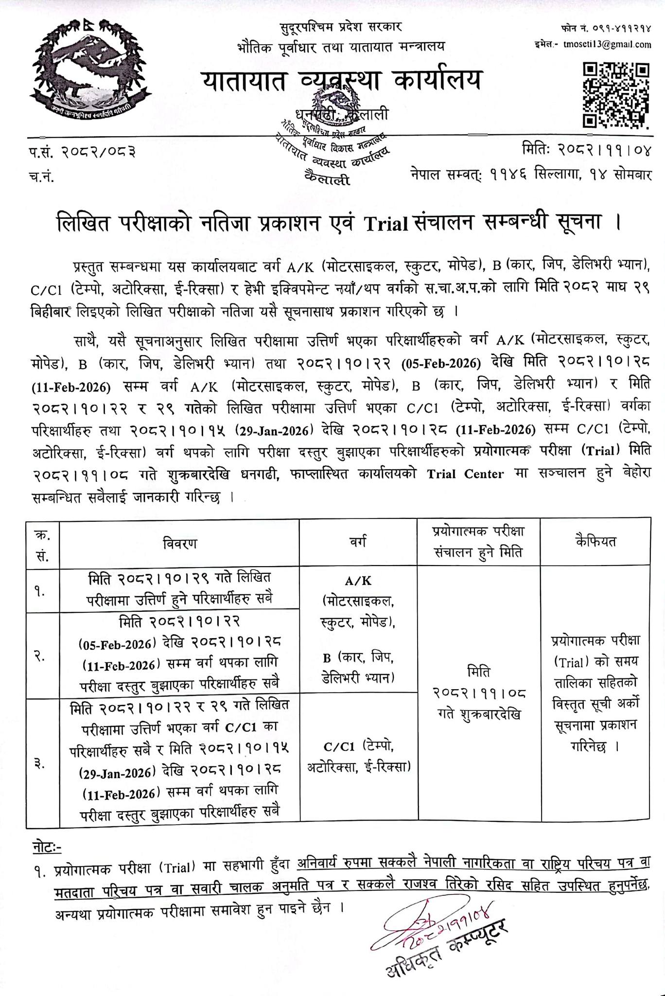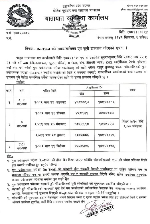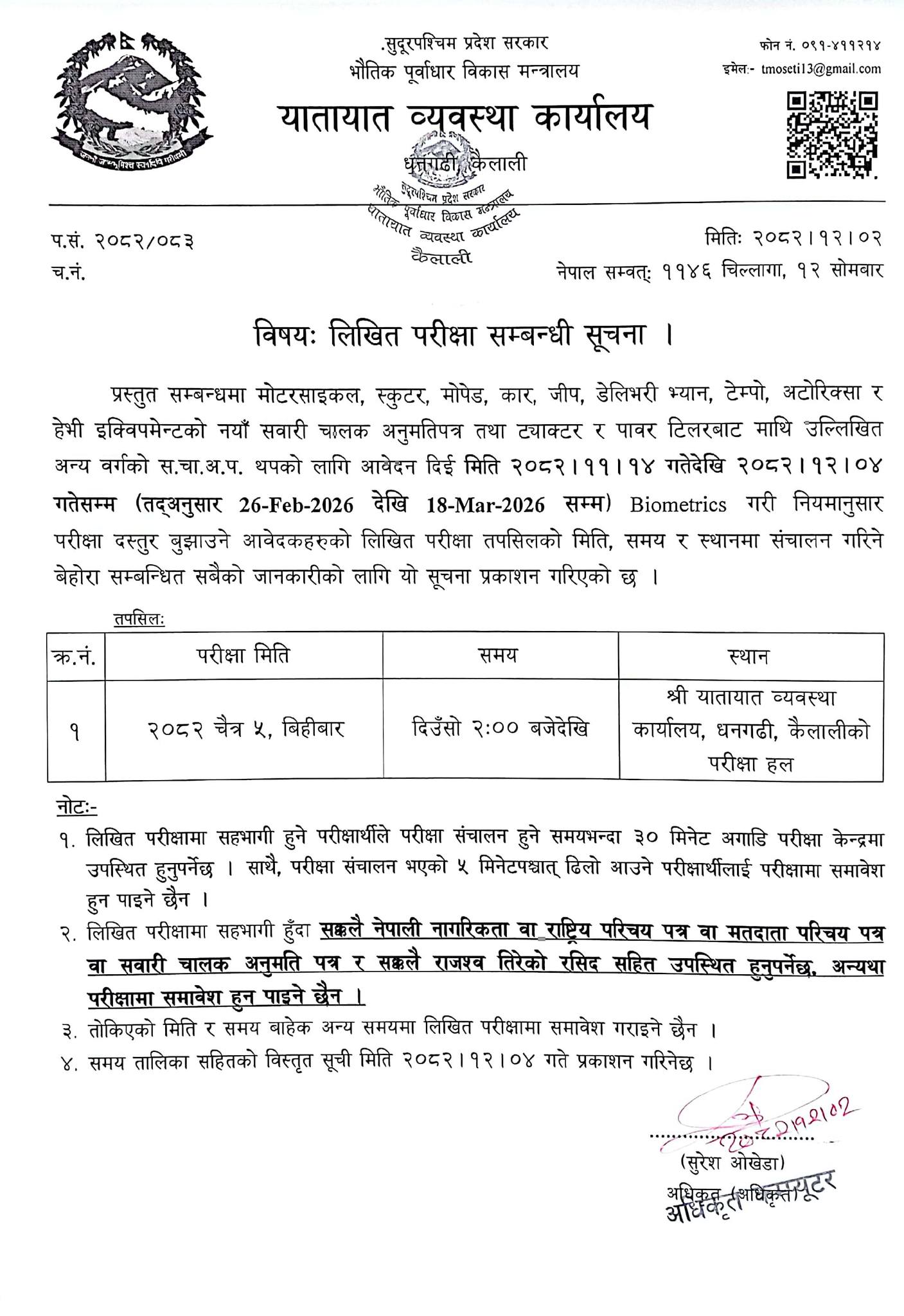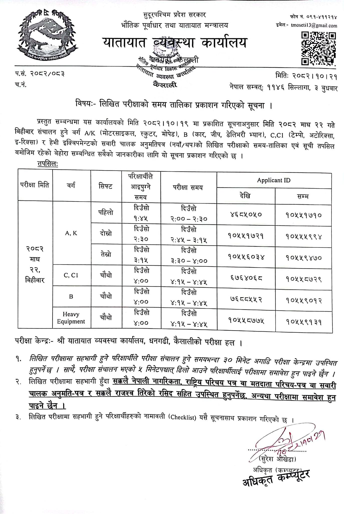 >> प्रयोगात्मक परिक्षा संचालन हुने सम्बन्धी सूचना।
