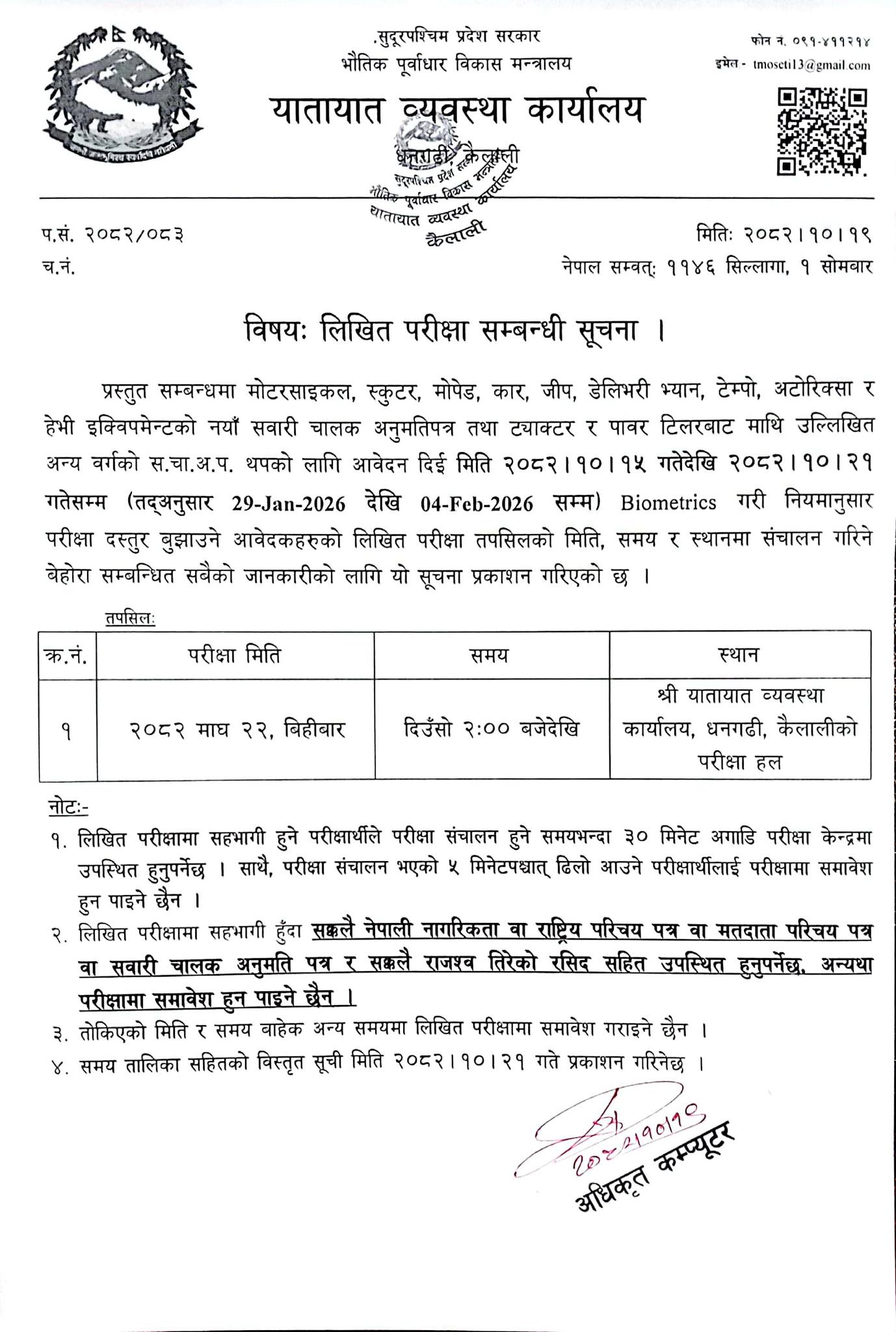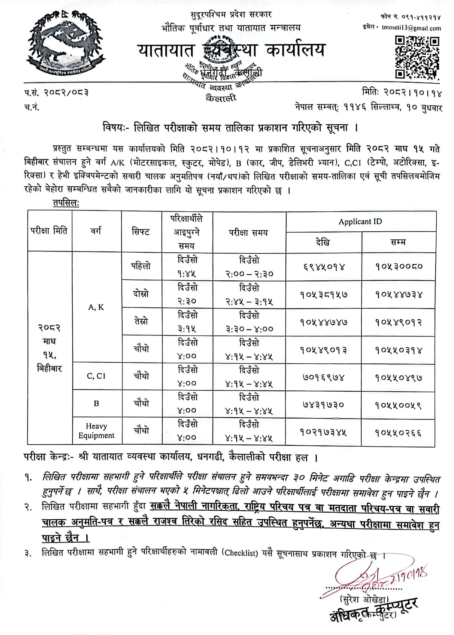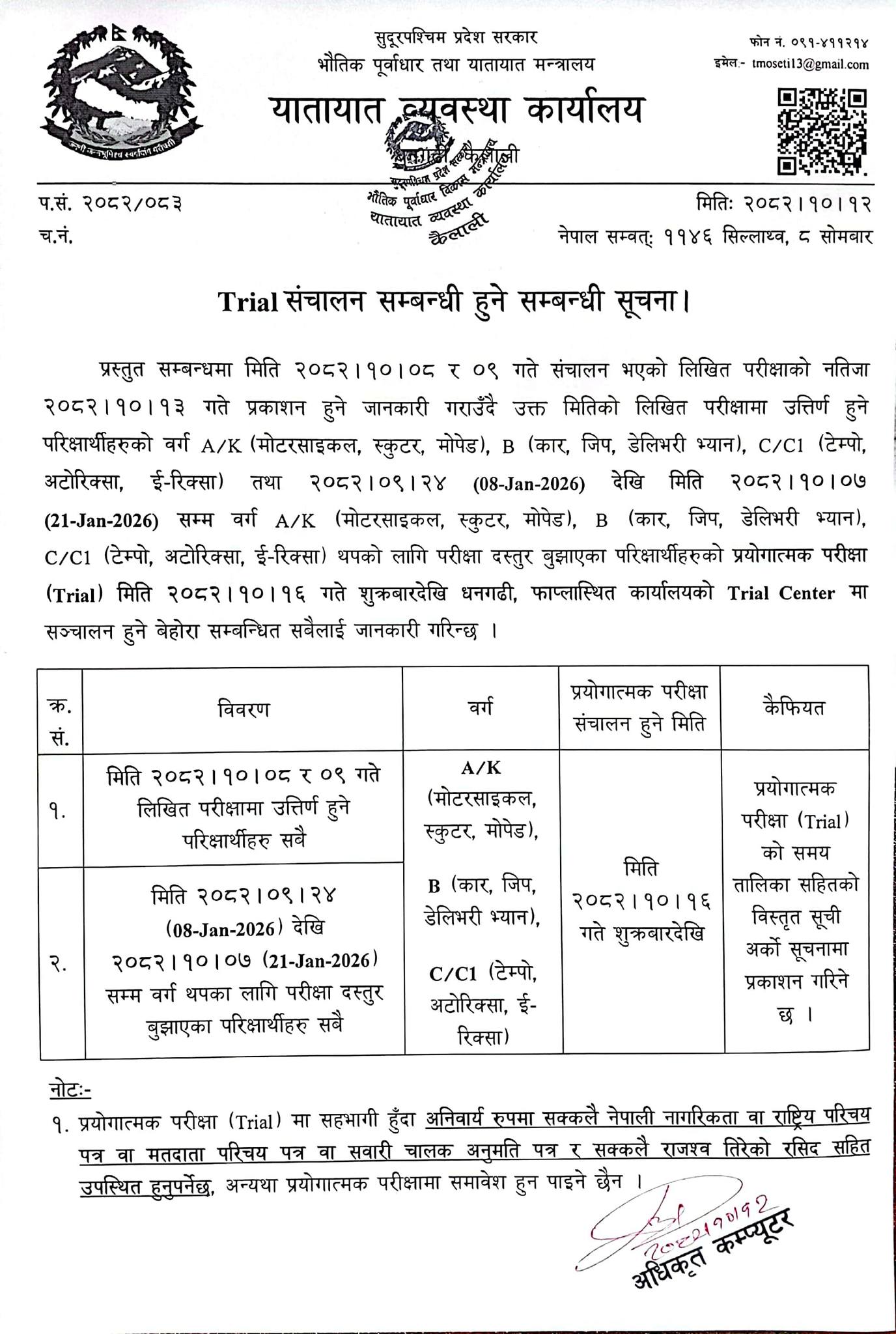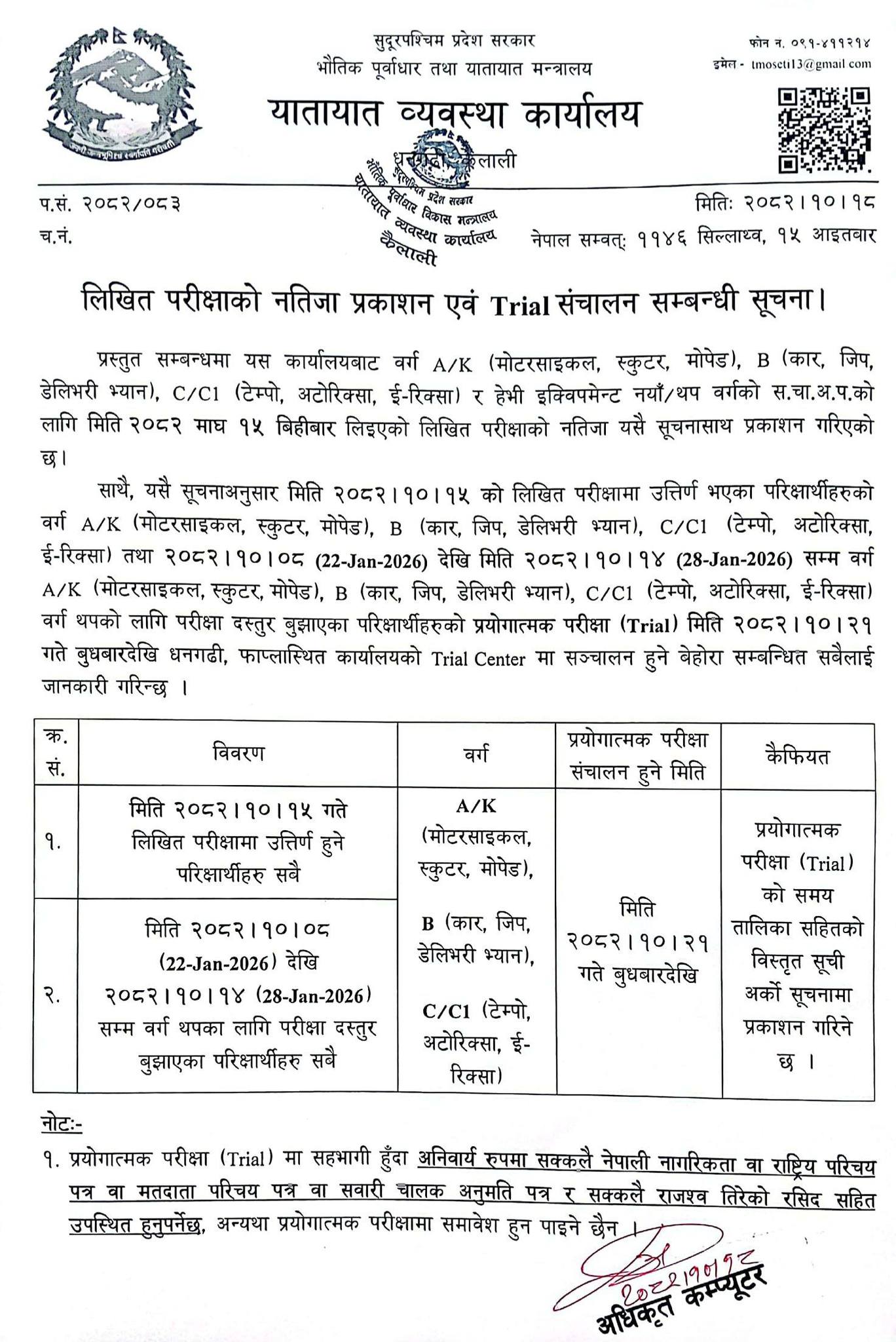 >> प्रयोगात्मक परिक्षा संचालन हुने सम्बन्धी सूचना।