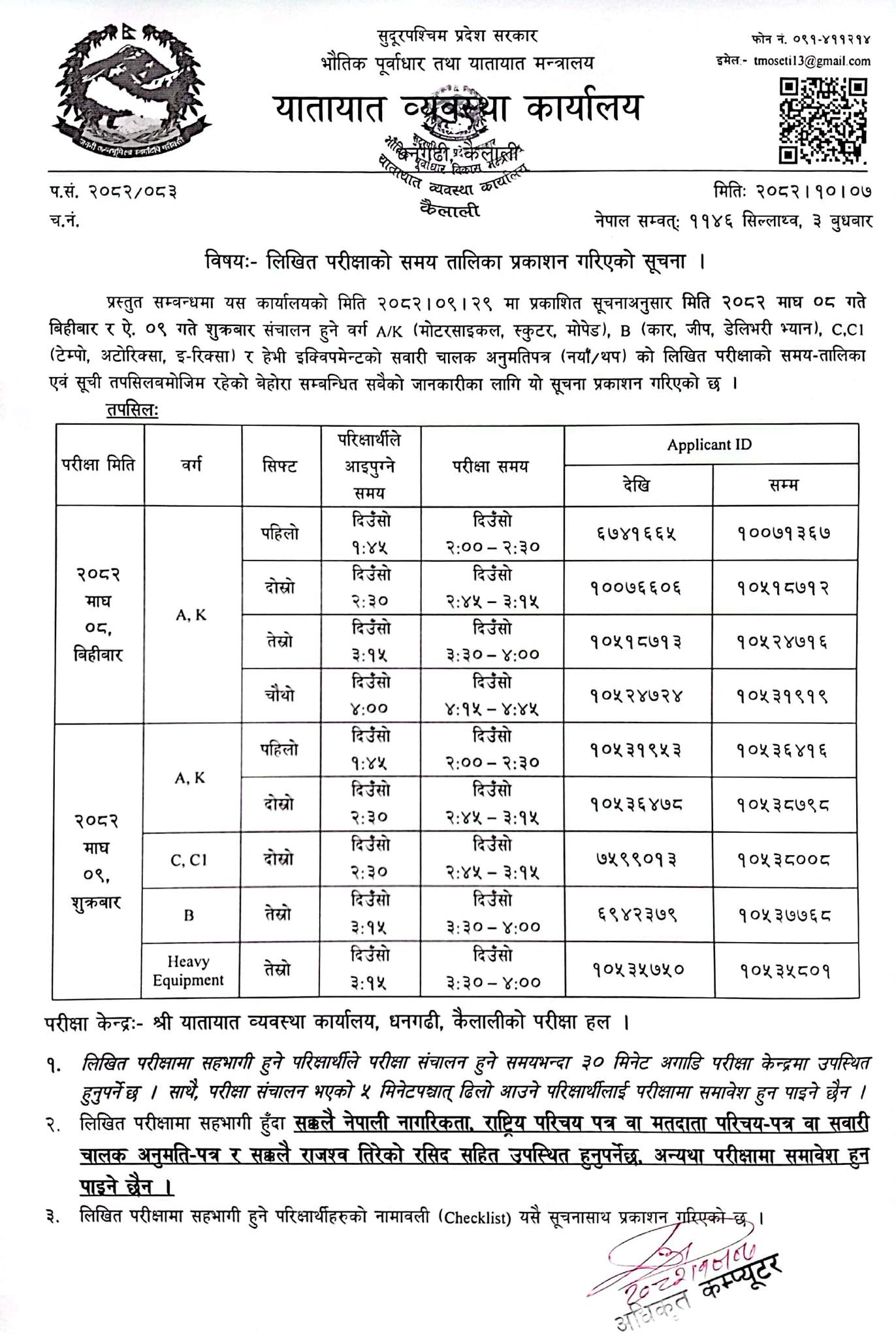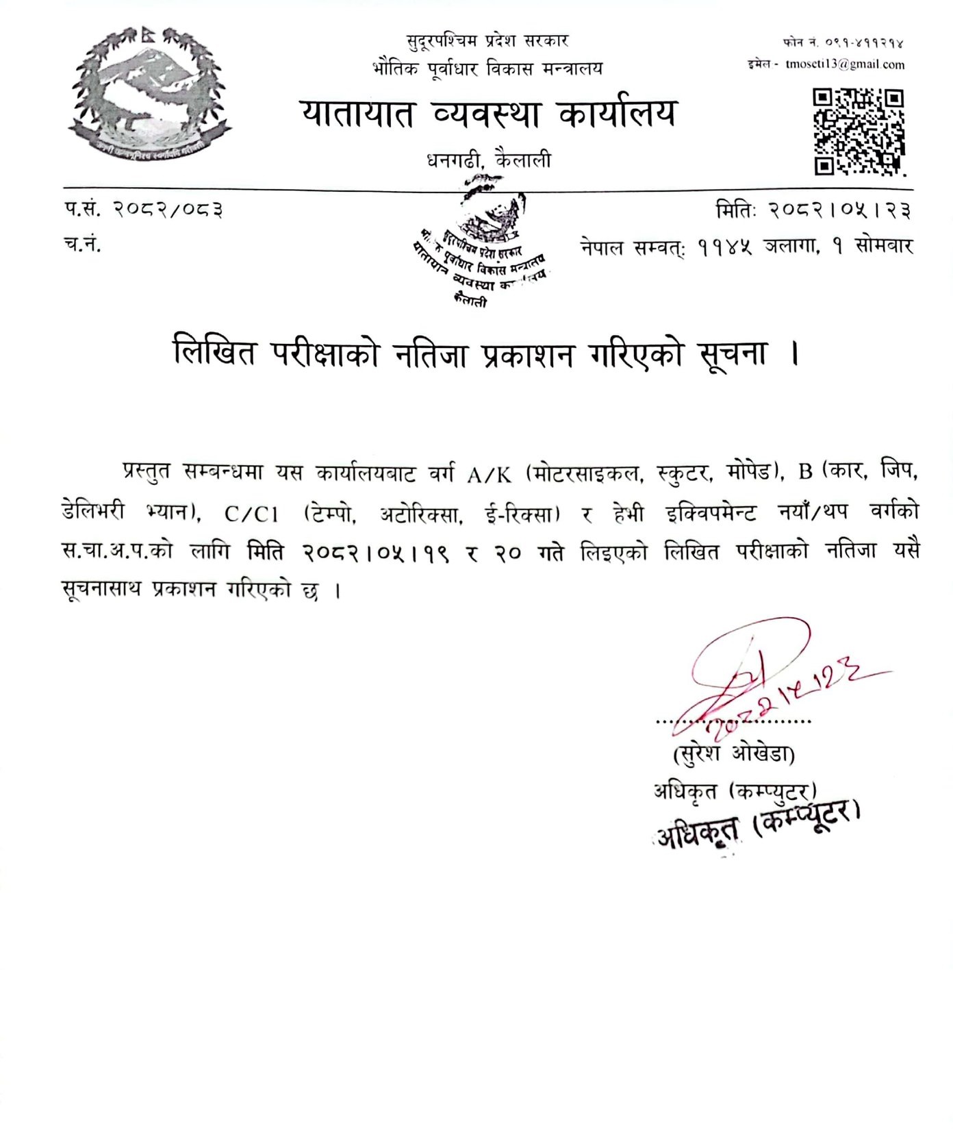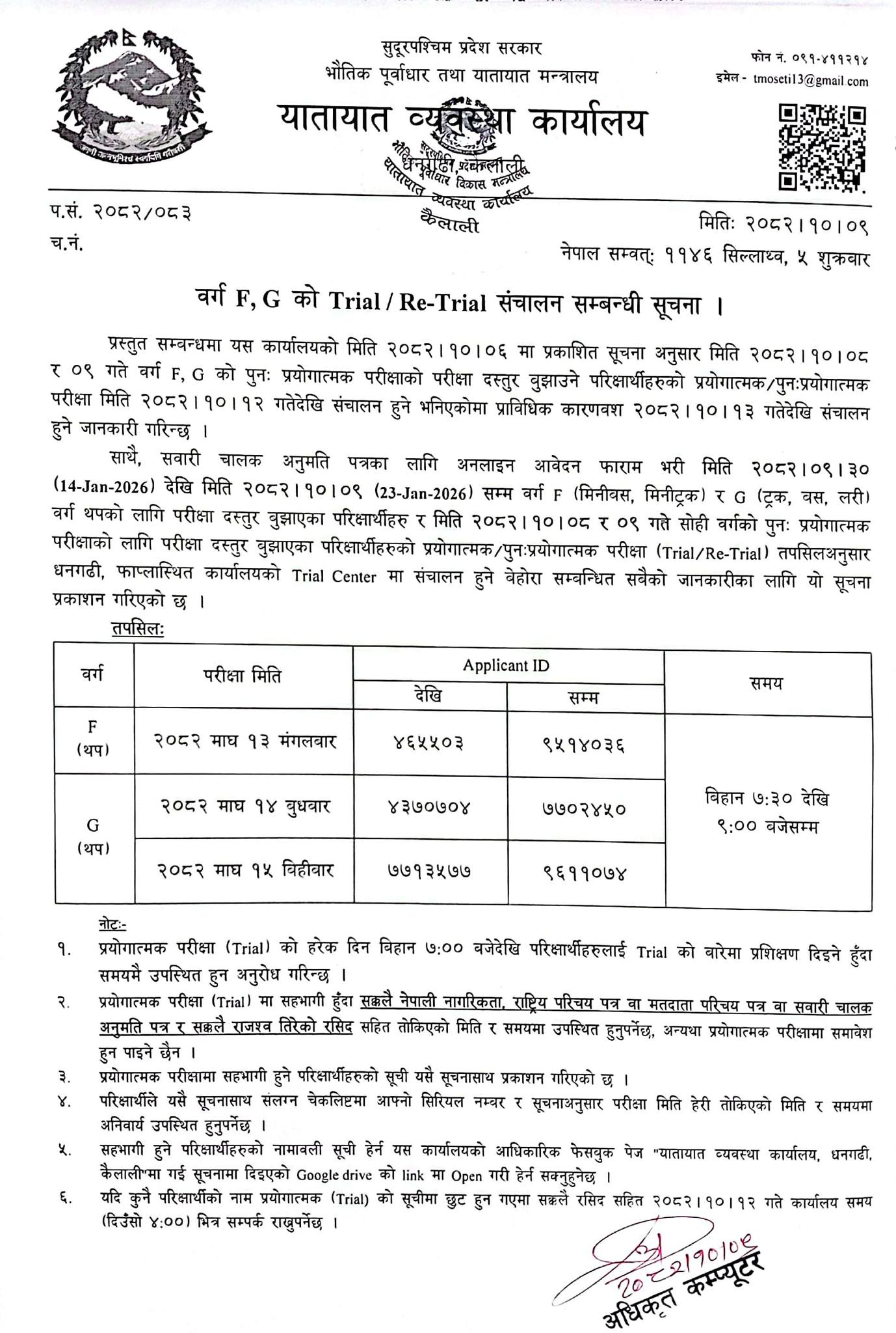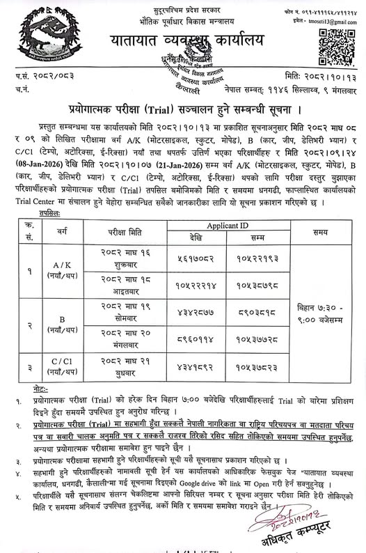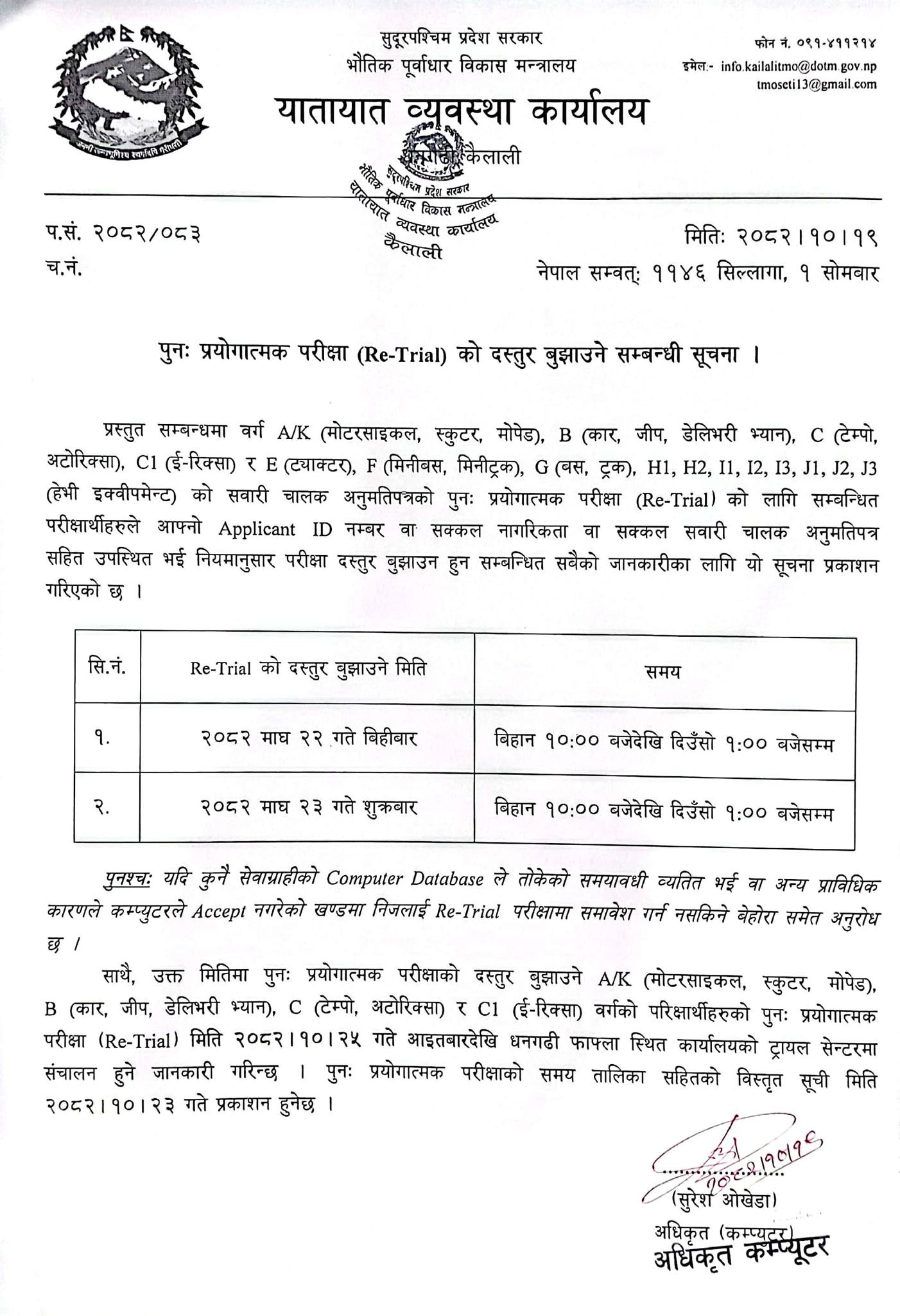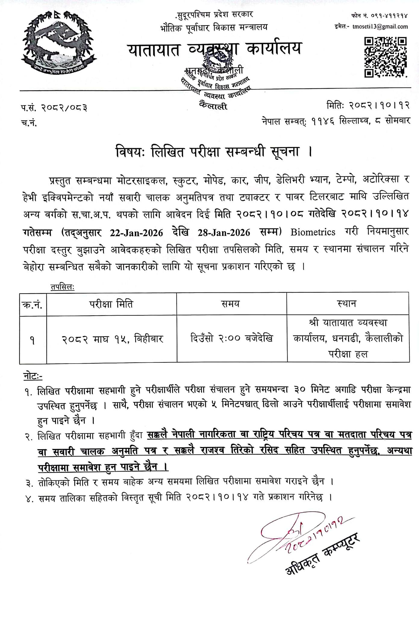 >> प्रयोगात्मक परिक्षा संचालन हुने सम्बन्धी सूचना।