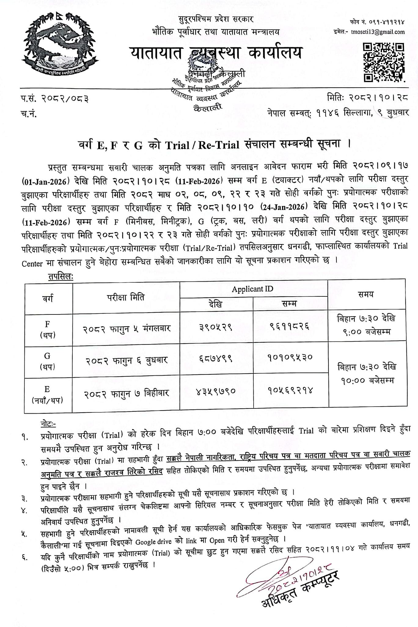जारी मिती: २०८२-२-७ |
