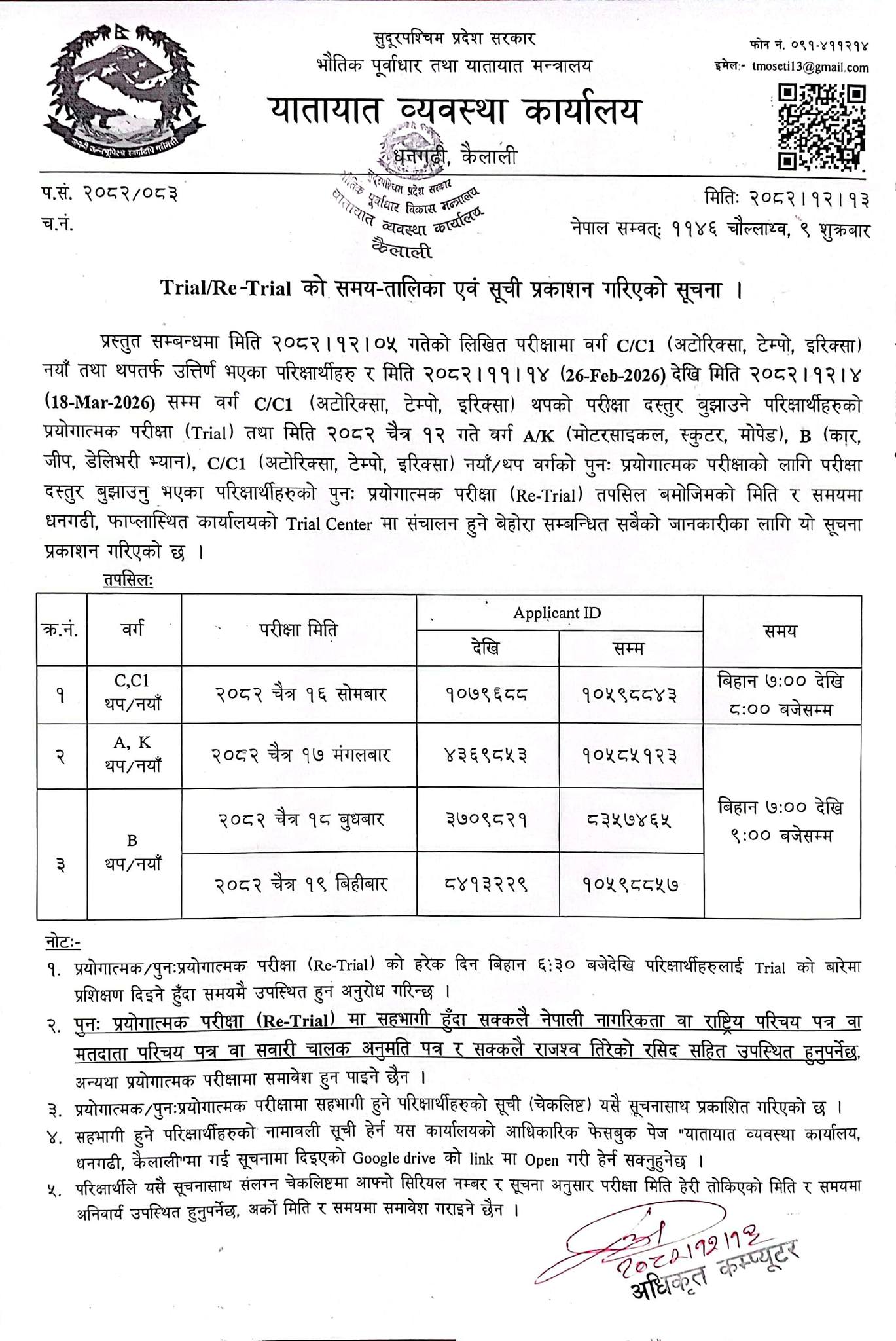 जारी मिती: २०८२-१२-९ |